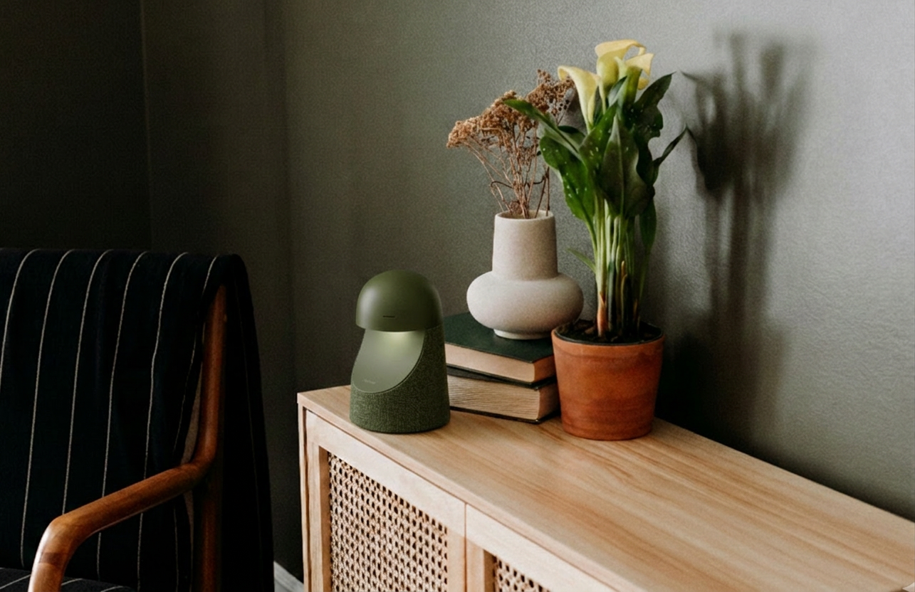 No screen. No complexity. Just a beautiful object and a familiar voice. Technology that feels like company, not technology.